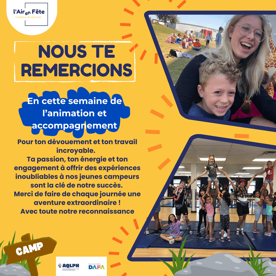 La Municipalité désire profiter de la Semaine de l’animation et de l’accompagnement pour féliciter et remercier toute l’équipe du camp de jour.