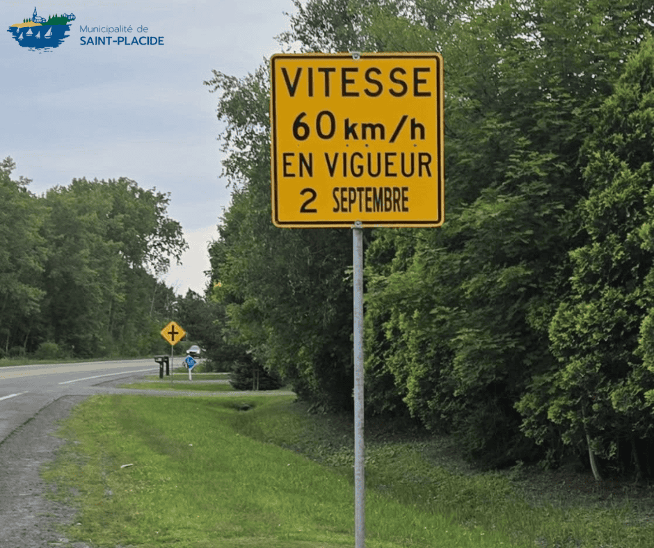 La Municipalité de Saint-Placide se réjouit de la décision du ministère des Transports et de la Mobilité durable d’abaisser la limite de vitesse à 60 km/h sur un tronçon de la route 344, à hauteur de la montée Saint-Vincent, près de la traverse piétonnière.