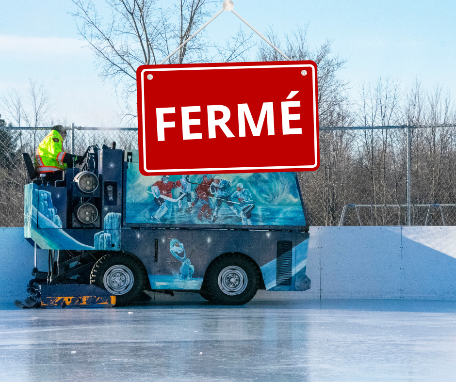 En raison des conditions météorologiques actuelles, la patinoire est fermée temporairement afin de préserver la qualité de la glace en vue de l’événement Disco patin de demain soir.
