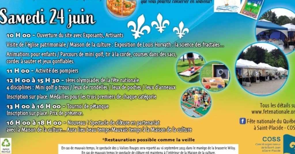 Comme promis, voici le programme des festivités de la Saint-Jean-Baptiste.