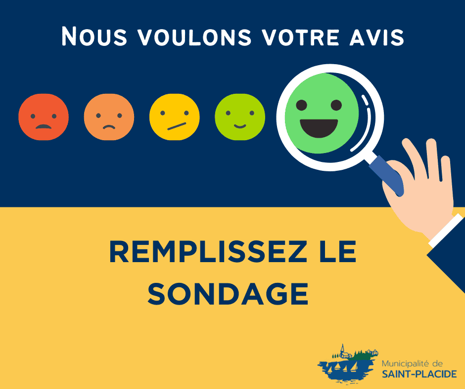 La Municipalité souhaite connaître votre avis afin d’améliorer les activités de loisirs, les infrastructures, les services de la bibliothèque et les événements organisés à Saint-Placide.