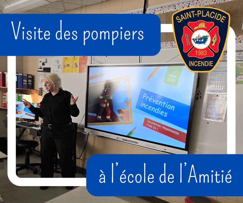 Un grand merci à l’interventionniste de la caserne des pompiers de Saint-Placide pour sa visite à l’école de l’Amitié, qui a eu lieu les 19 et 26 mars derniers ! 🔥
