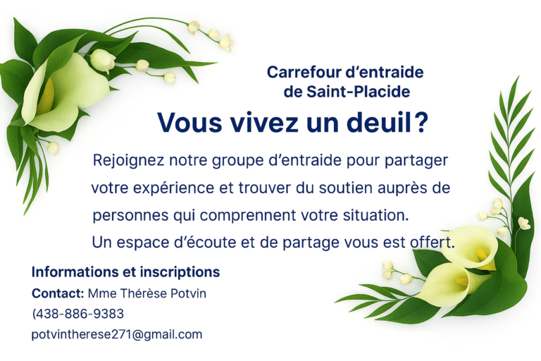 Nouveau service – Groupe d’entraide pour les personnes vivant un deuil